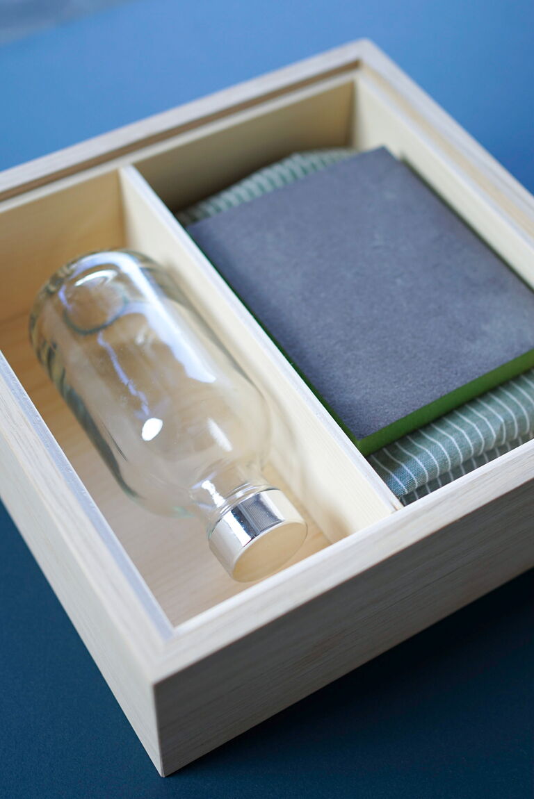 Eiche und Weißtanne, Inhalt: Ölflasche, Schleifmittel, Pflegetuch, Pflegeanleitung