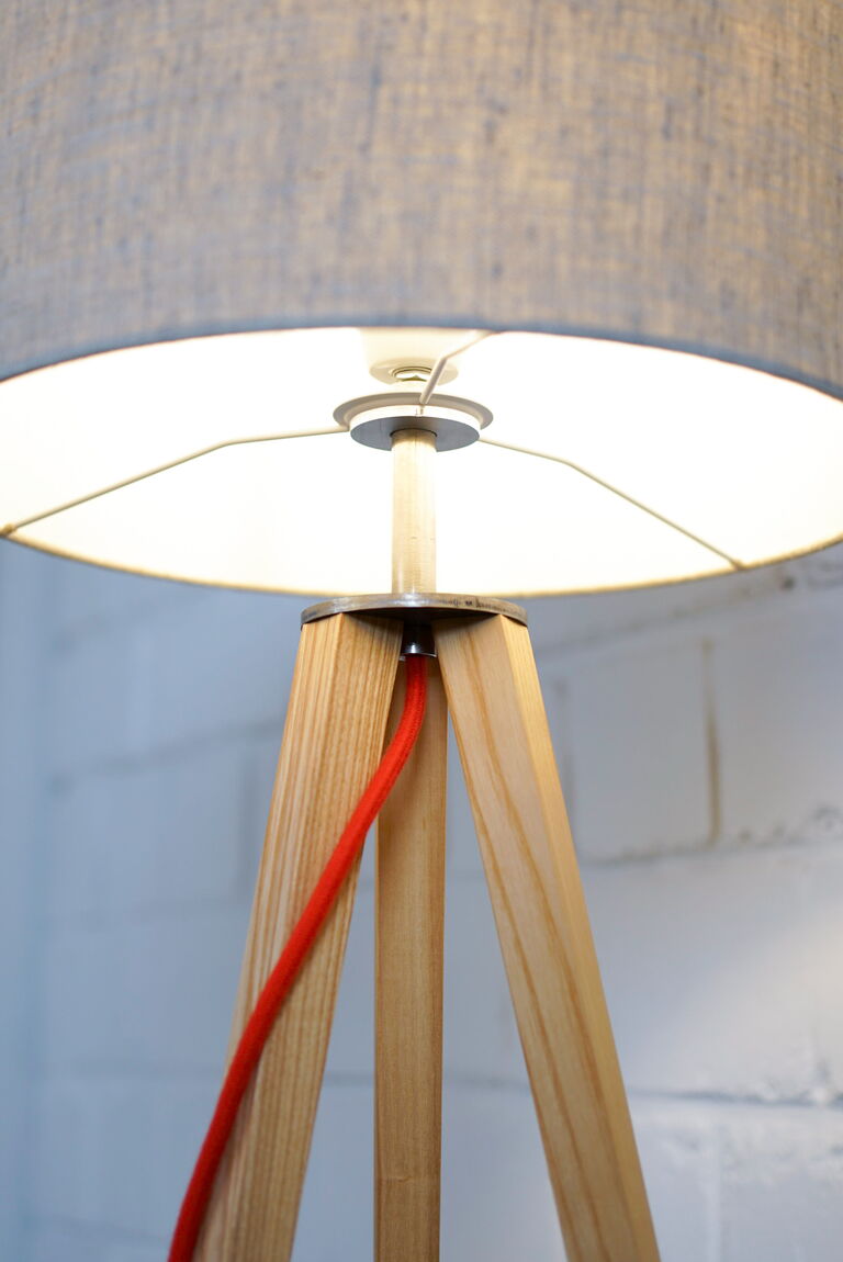 Esche geölt, Edelstahl, Textilkabel und Textillampenschirm